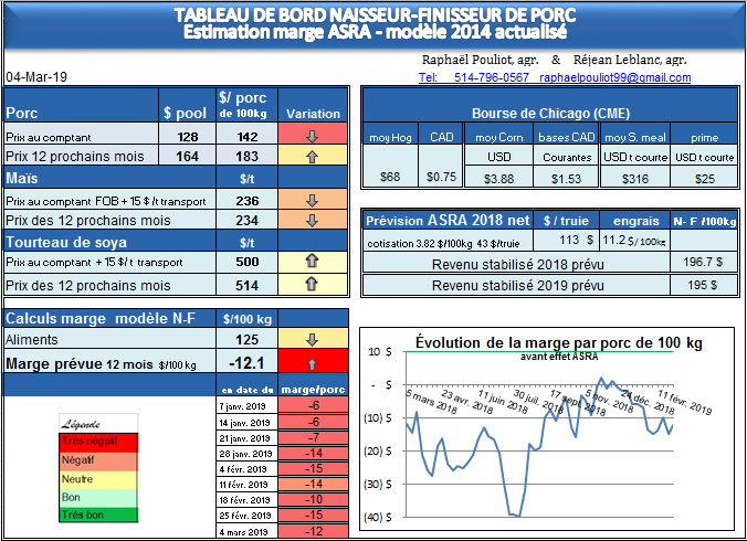 Le prix du porc semble vouloir tranquillement augmenter, ce qui serait le bienvenu. Il y a certes des opportunités selon vos objectifs sur les contrats de l’automne, cela dans un contexte où il n’y a pas de peste porcine. Il faut donc être prudent le cas échéant et vous protéger en conséquence, au cas d’une hausse importante durant cette période. Sinon, pas grand à écrire et surtout profiter de ces moments difficiles pour faire une bonne analyse de votre entreprise, de vos forces et faiblesses. Les producteurs en général sont dans l’attente de la décision de la régie et celle-ci aura une influence certaine sur le positionnement futur d’un bon nombre d’entreprises.