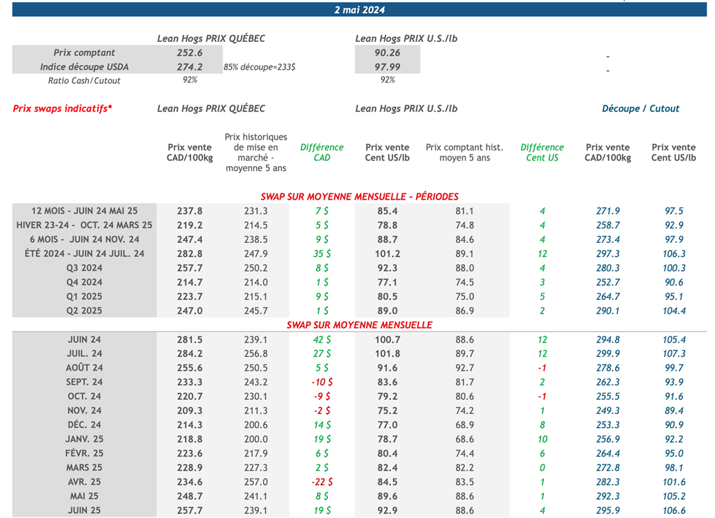 • 9 mai: USDA - Ventes nettes d’exportations pour les grains et le porc