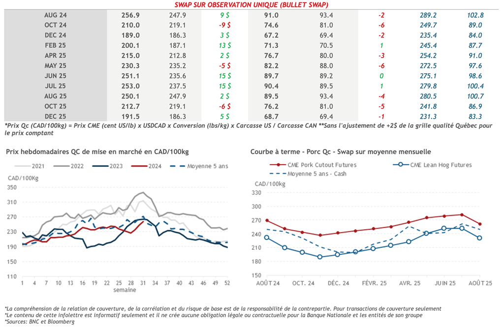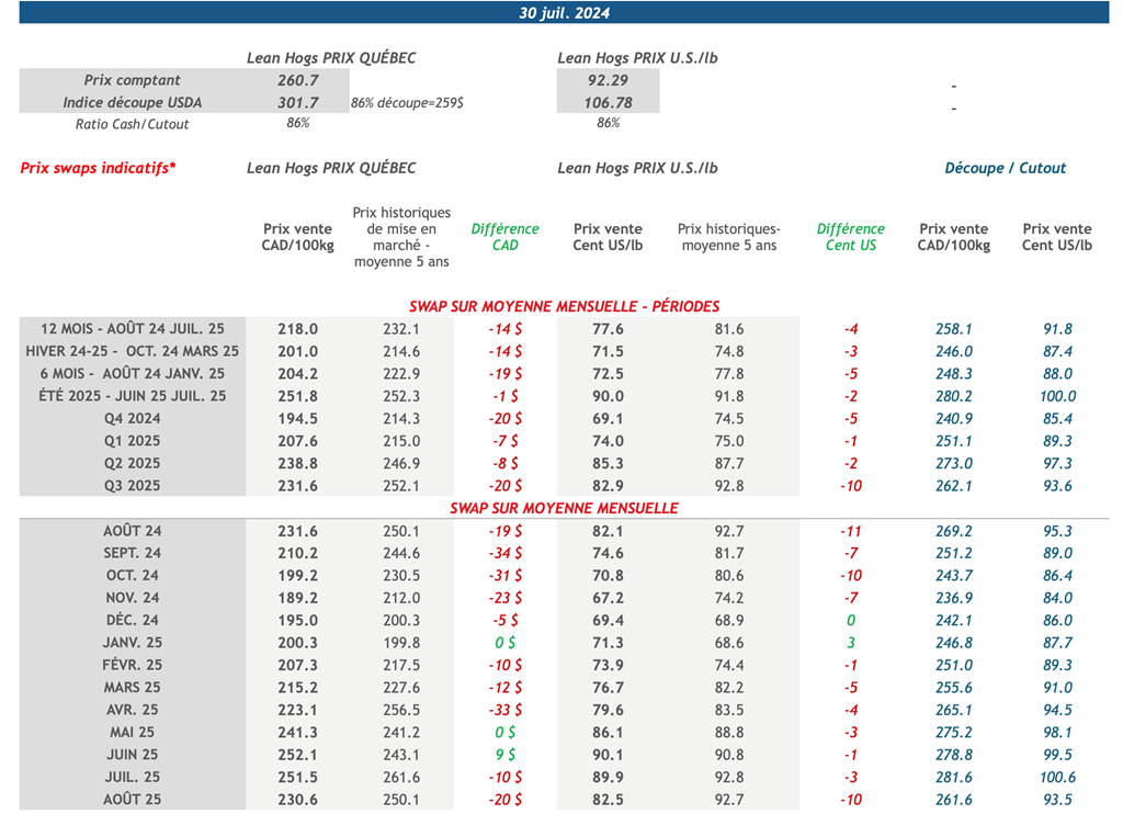 • 1er août: USDA - Ventes nettes d’exportations pour les grains et le porc