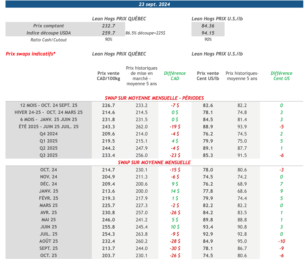 • 26 septembre: USDA - Ventes nettes d’exportations pour les grains et le porc