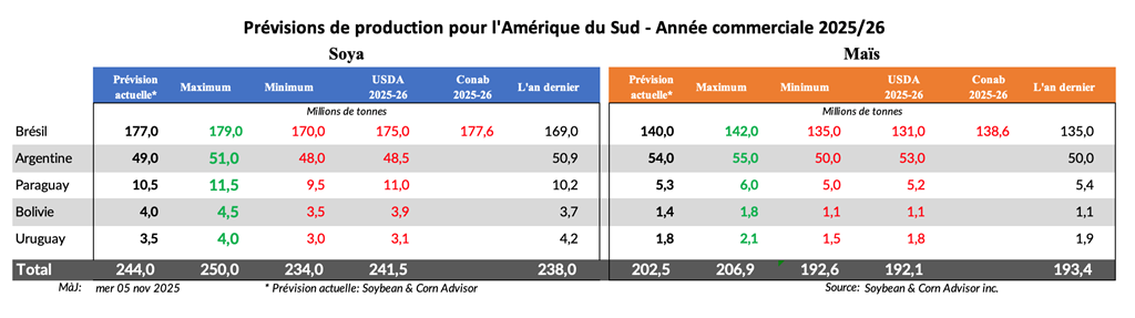 Cela représente une hausse de 169% vs an des exportations de soya, par rapport aux 4.5 Mt exportées en 2023/24. La flambée des expéditions résulte du deuxième différend commercial entre les États‑Unis et la Chine. Après la première administration Trump, la Chine s’est tournée vers des partenaires sud‑américains jugés plus fiables pour ses besoins en soya.