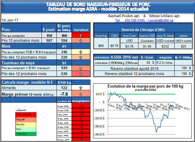 La marge par porc s’est détériorée à -7,6 $/porc.