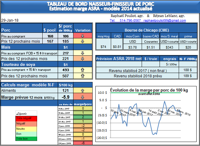 - Après des prix du porc intéressant pour cette période de l’année au cours des dernières semaines, celui-ci a fortement baissé la semaine dernière. De marges souvent négatives pour le premier trimestre, les bons prix que nous avons connus, en plus des possibilités de sécuriser des marges près du revenu stabilisé, ont permis de minimiser les pertes pour ce premier trimestre. Cela aide à travailler des marges positives pour l’année. Généralement, le premier et dernier trimestre, sont ceux qui occasionnent le plus de pertes. Si l’on peut minimiser celle-ci pour le premier trimestre, on s’aide beaucoup pour le reste de 2018. Évidemment, il faut en mesure de produire près du revenu stabilisé.
