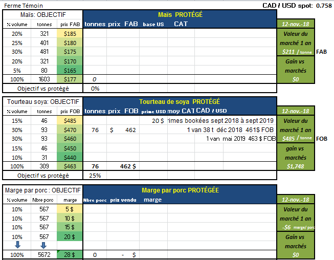 Les prix étaient en fait 1$ par porc plus élevé que ces ventes à 10 h.... Il s'agit des premières positions que la ferme Témoin prend pour le porc depuis ce printemps, la ferme n'a que du tourteau de soya de booké présentement.