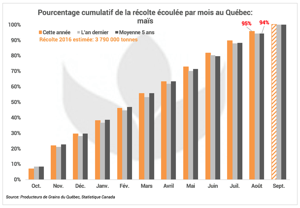 Outre le retard dans la récolte de maïs cette année, lorsqu’on jette un coup d’œil aux statistiques d’écoulement des stocks diffusées par Producteurs de Grains du Québec, on peut comprendre pourquoi.