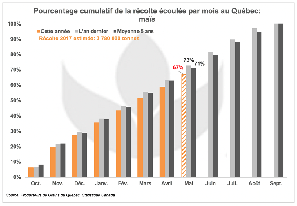 Cependant, les stocks de maïs apparaissent encore élevés au Québec, plus que dans les dernières années. Sur le terrain, on rapporte aussi que plusieurs producteurs ont encore de bons volumes à vendre d’ici les récoltes.