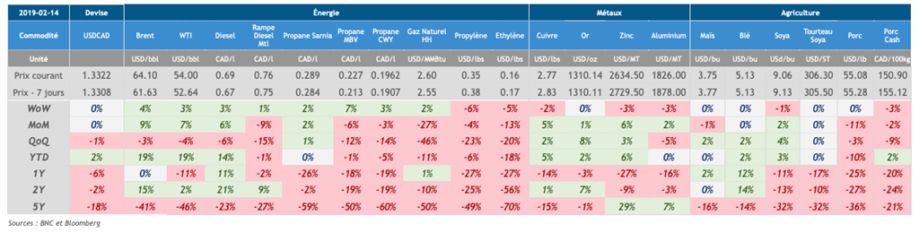 - Les ventes au détail américaines ont grandement décu les marchés ce matin alors que celles-ci ont enregistré une baisse de 1.2% en décembre 2018 alors les économistes s'attendaient à une très légère progression. Au Canada, les ventes manufacturières ont aussi décu alors que les données sont sorties négatives à 1.3% de baisse alors que les attentes étaients positives à +0.4%