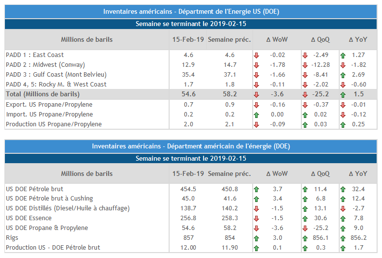 - Les commentaires du président de la FED ont rassuré les marchés financiers alors que la Banque centrale se montre très prudente face aux hausses de taux à venir pour 2019. Le gouverneur de la Banque du Canada (M. Poloz) sera aussi sur des tribunes aujourd'hui donnant ses commentaires sur l'économie canadienne