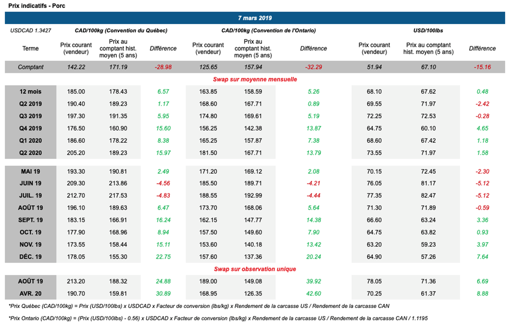 - Les échos voulant que le rythme d’abattage et la production demeurent élevés aux US, combiné à la forte escompte du prix au comptant, ont contribué hier à affaiblir le prix du contrat d’Avril 2019.