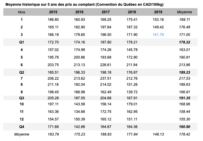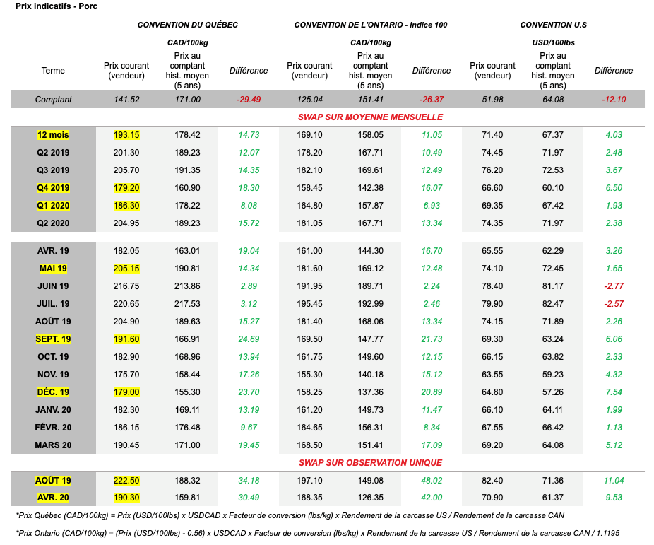 Voici les prix indicatifs (avant l’ouverture des marchés) pour le porc et les grains.
