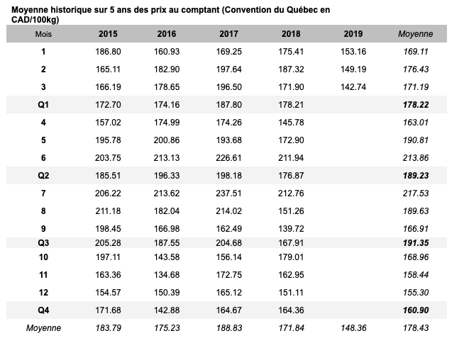 - Dans le soya, les inventaires américains étaient plus en ligne avec les attentes du marché, en hausse de 707 millions de boisseaux par rapport à l’an dernier. Avec des inventaires records, les intentions d’ensemencement sont inférieures en 2019 à 84.617 millions d’acres vs. 89.196 millions d’acres en 2018. Le marché a été beaucoup moins réactif que pour le maïs, pratiquement inchangé à Chicago vendredi.