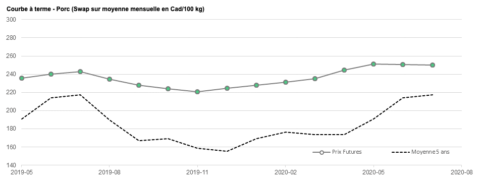 Voici les prix les plus récents sur le marché du porc et des grains: