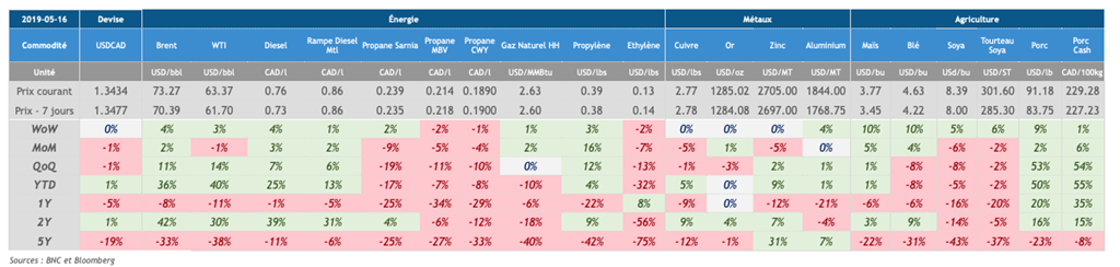 Voici les principaux points à retenir dans les marchés des commodités :