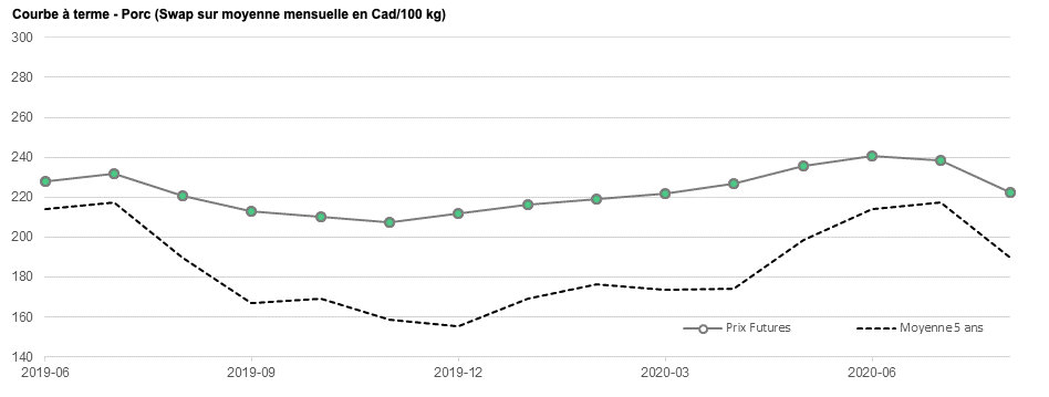 Voici les prix les plus récents sur le marché du porc et des grains: