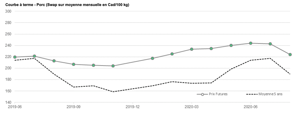 Voici les prix les plus récents sur le marché du porc et des grains: