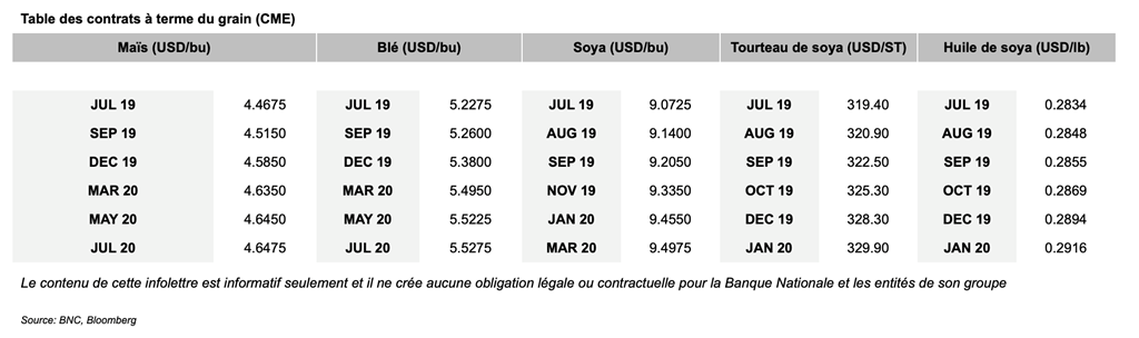 - La Chine maintiendra des tarrifs élevés sur les céréales sèches de distillerie en provenance d'Amérique avant la rencontre de la semaine prochaine entre les présidents Donald Trump et Xi Jinping en vue de relancer les négociations commerciales. La Chine a également renforcé les contrôles sur la viande de porc canadienne après avoir suspendu les importations du transformateur canadien Frigo Royal.