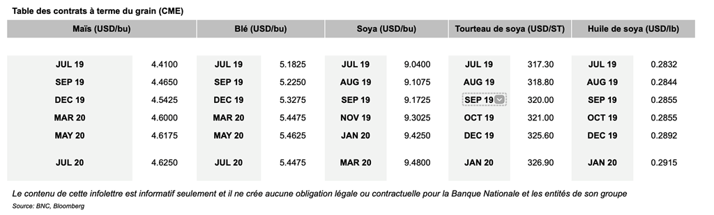 Voici les prix les plus récents sur le marché du porc et des grains: