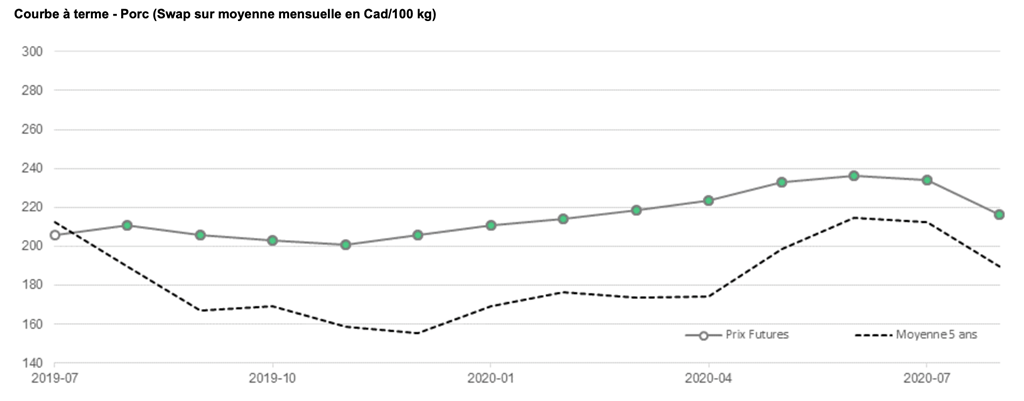Voici les prix les plus récents sur le marché du porc et des grains: