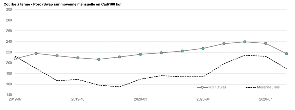 • Les contrats de porcs au Chicago Mercantile Exchange (CME) ont clôturé la semaine dernière avec des gains intéressants. Le contrat actif de porc a notamment clôturé à 0.78925 USD/lb pour un gain hebdomadaire de près de 7.8%.