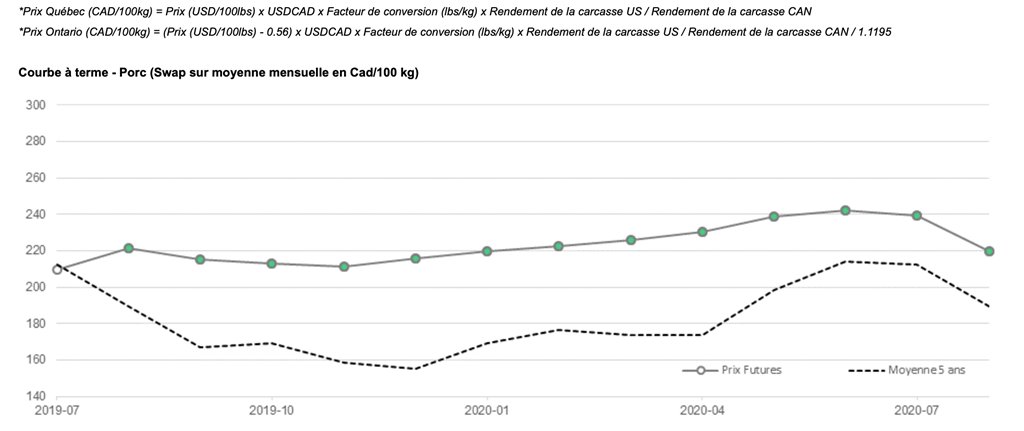 • Les futures de porcs sur le CME transigeaient à la hausse hier, avec des gains journaliers importants pour les contrats d’aout, d’octobre et de décembre.