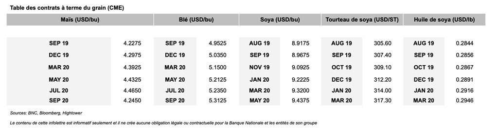 • Les contrats de porc ont subi des sorts variés hier, enregistrant tous des gains sauf pour les contrats d’octobre et décembre 2019, ainsi que ceux de février et d’octobre 2020.