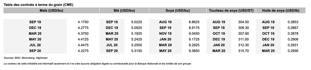 • Les contrats à Chicago ont enregistré des gains la semaine dernière pour une troisième semaine consécutive. Le contrat d’octobre a notamment clôturé la semaine à 0.7945 USD/lb, une hausse hebdomadaire de 0.7%.