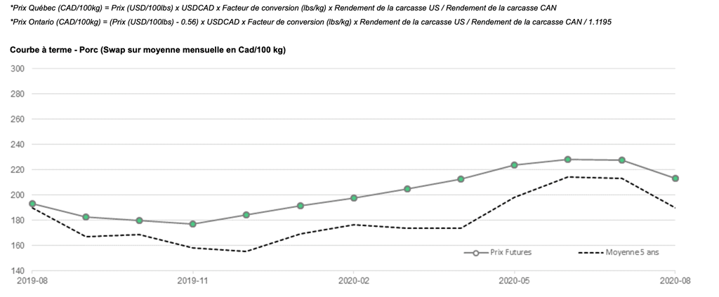 Voici les prix les plus récents sur le marché du porc et des grains: