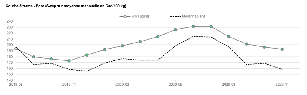 *Les contrats de porc au Chicago Mercantile Exchange ont renversé les pertes subies en début de semaine dernière. Le contrat actif (octobre) a clôturé la semaine avec un gain modeste de 1.75%.