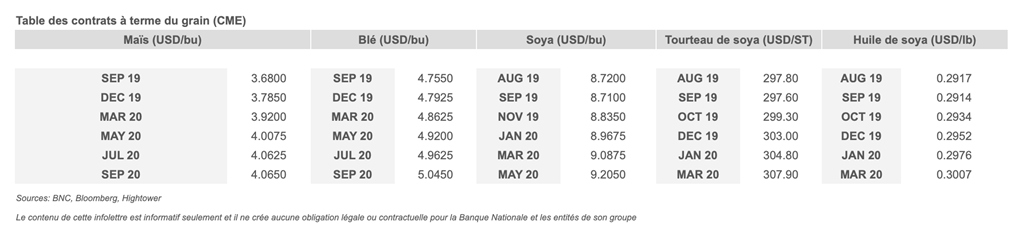 • Aux États-Unis, les tensions commerciales sino-américaines sont toujours au centre des intérêts des éleveurs de porcs. Hier le Président Trump a annoncé que les nouveaux tarifs sur certains produits chinois, tels que les biens électroniques, seront suspendus jusqu’à décembre. Toutefois, les tarifs agricoles devraient toujours entrer en vigueur d’ici le 1er septembre.