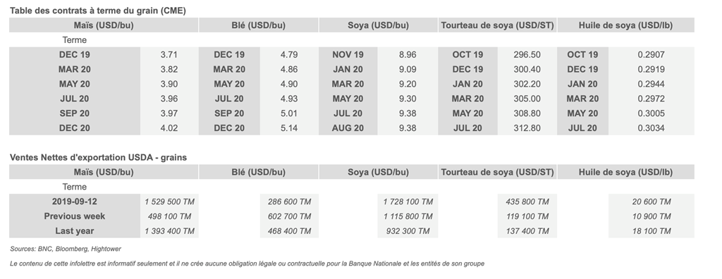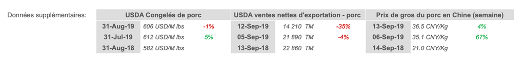 • La Corée du Sud a confirmé un cinquième cas de peste porcine africaine. La Chine a annoncé le 26 septembre une vente aux enchères de 10 000 tonnes de viande de porc importée sur le marché intérieur pour tenter d'atténuer la tendance haussière des prix du porc.