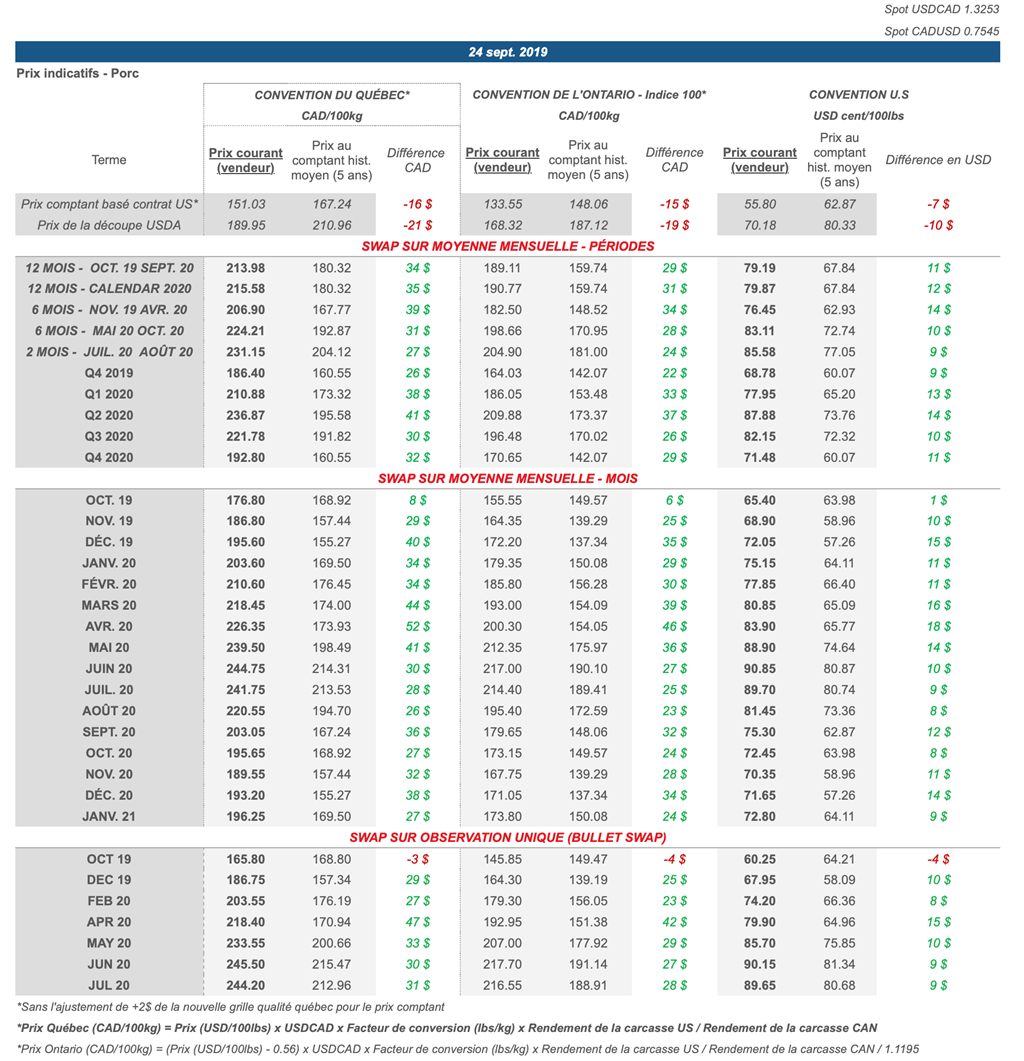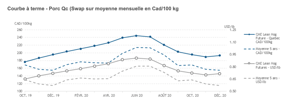 • Le marché est à la hausse, mais il sera important de voir de fortes augmentations des valeurs de la découpe du porc dans les semaines à venir afin de rationaliser la prime de décembre sur le cash (comptant).