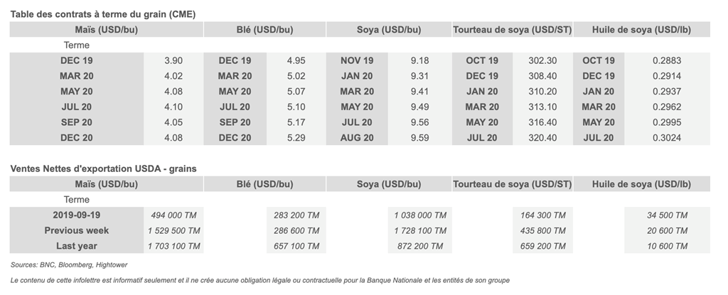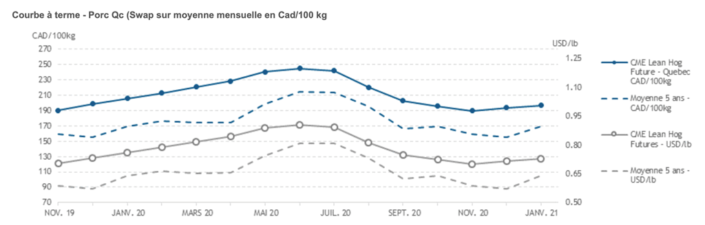 Voici les prix les plus récents sur le marché du porc et des grains: