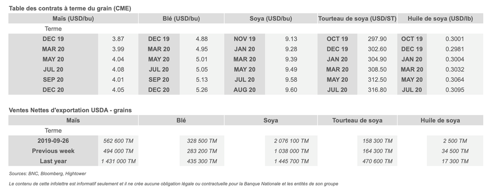• Il y a deux grands événements sur le marché des grains cette semaine: le rapport mensuel de l'offre et celui de la demande du USDA publié jeudi matin.