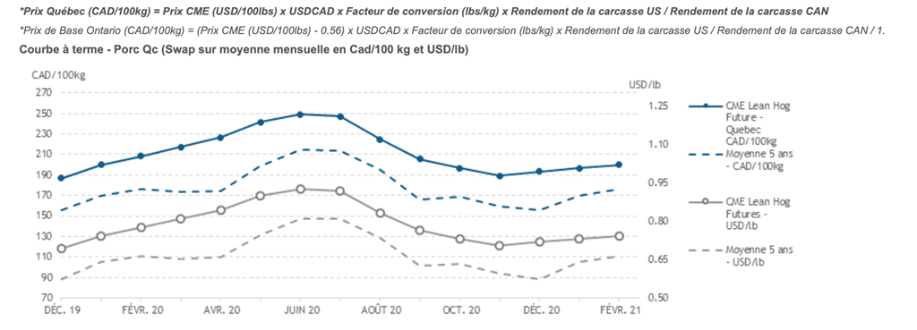 Voici les prix les plus récents sur le marché du porc et des grains: