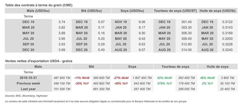 • Les exportations de maïs des États-Unis sont en partie affaiblies par le ralentissement des ventes brésiliennes et la reprise des récoltes dans le Midwest américain.