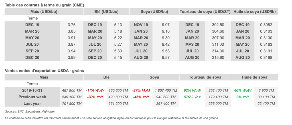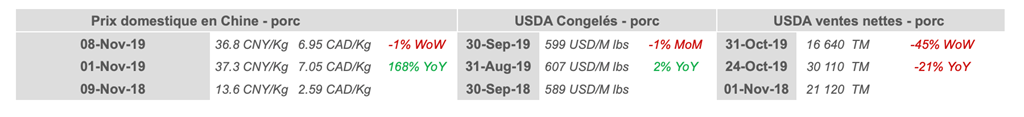 • Les prix du porc ont augmenté hier, en particulier les contrats de décembre-19 à avril-20.