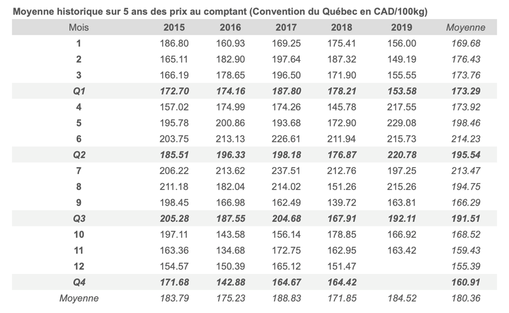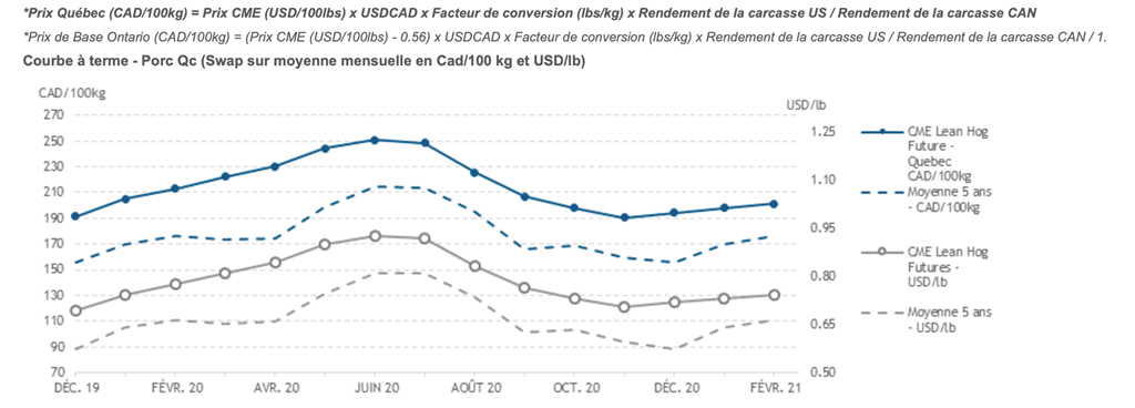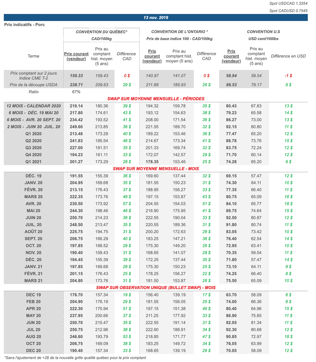 Voici les prix les plus récents sur le marché du porc et des grains: