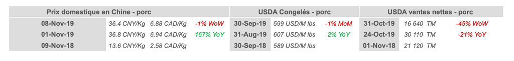 • Le marché a rebondi hier matin, mais les relations commerciales entre la Chine et les États-Unis ont accru la pression sur le marché du porc.
