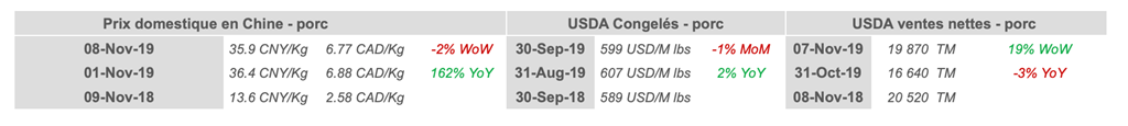 • Les ventes nettes d'exportation de porcs US ne sont pas très impressionnantes, avec un total de 19 900 TM cette semaine. Pour 2020, la Chine a acheté 9 900 TM (92% du total des achats).