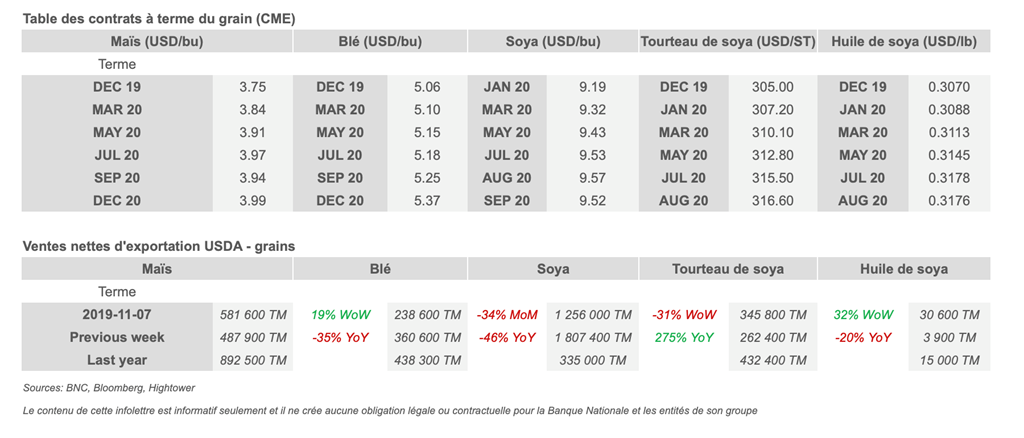 • Les ventes nettes d’exportation de maïs aux États-Unis sont passées de 488k tonnes à 582k cette semaine. Les perspectives de pluie dans l'est et le sud du Midwest pour la semaine à venir donnent de l'espoir aux récoltes de maïs et de soya.