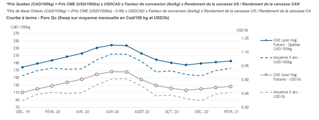 Voici les prix les plus récents sur le marché du porc et des grains: