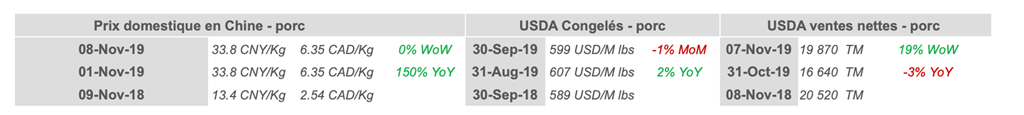 • Les contrats à terme sur le porc sont en baisse ce matin parce que les marchés anticipent des retards dans la résolution de la guerre commerciale entre les États-Unis et la Chine.