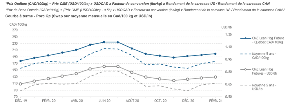 Voici les prix les plus récents sur le marché du porc et des grains: