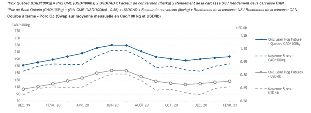 Voici les prix les plus récents sur le marché du porc et des grains: