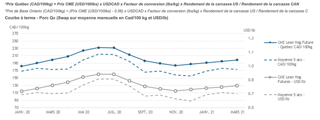 Voici les prix les plus récents sur le marché du porc et des grains: