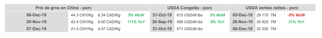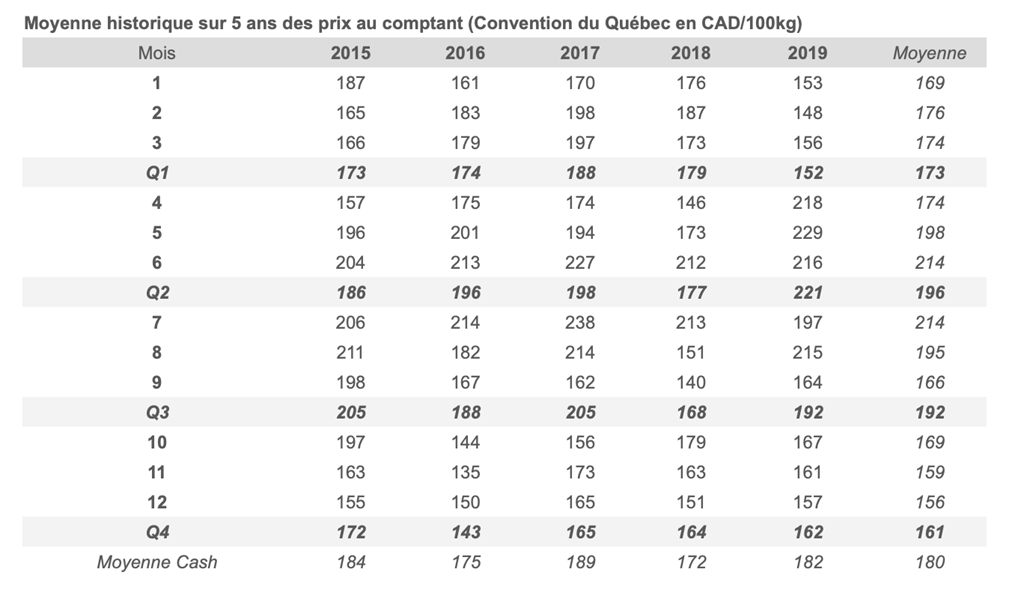 Voici les prix les plus récents sur le marché du porc et des grains: