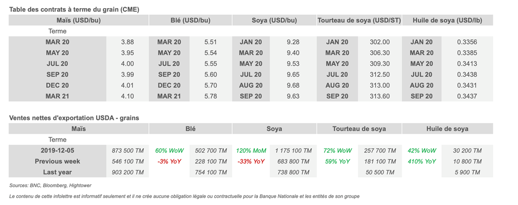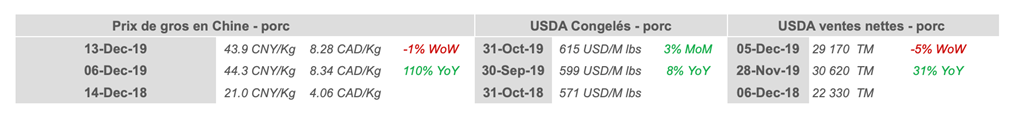 Voici les prix les plus récents sur le marché du porc et des grains: