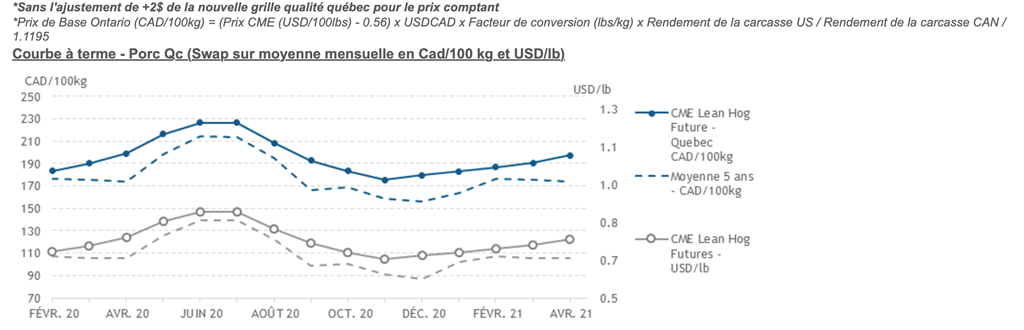 Voici les prix les plus récents sur le marché du porc et des grains: