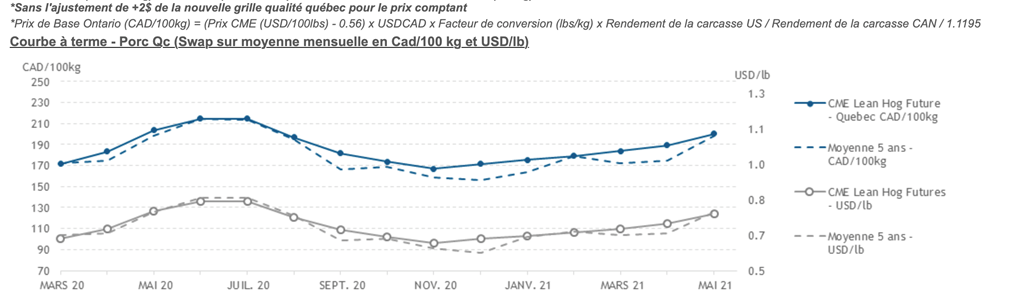 Voici les prix les plus récents sur le marché du porc et des grains: