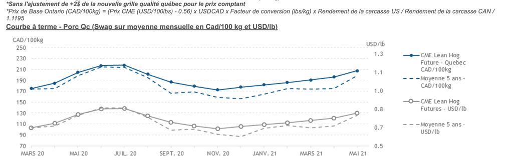 Voici les prix les plus récents sur le marché du porc et des grains: